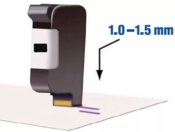 最佳打印效果:保持打印头与打印纸张的距离介于1mm ~ 1.5mm之间。